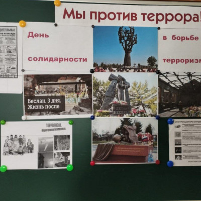 В память о трагических событиях в Беслане в библиотеке училища организована выставка, прошла беседа «Мы против террора!» для студентов 1 курса, которую провели активисты училища Екатерина Колюкаева и Елизавета Макеева.