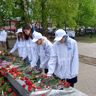 9 мая студенты училища - волонтеры культуры приняли участие в митенге и возложении цветов на братской могиле №5.