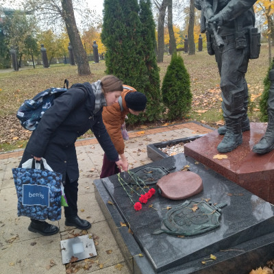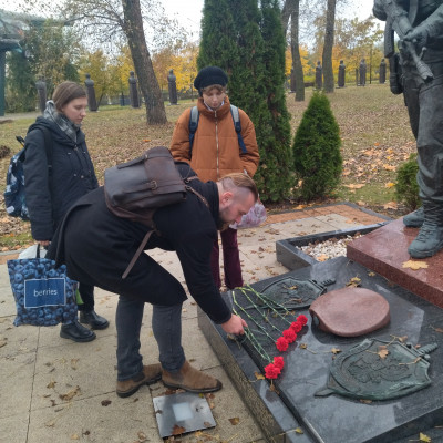 23.10.2023г. советник директора по воспитанию Бондарева М.В., преподаватель - организатор ОБЖ Смородинов Н.В. со студентами 2 курса возложили цветы в парке Патриотов к памятнику бойцам спецподразделений и сотрудникам органов государственной безопасности. Памятник установлен 28 октября 2018 в память о сотрудниках спецподразделений, погибших при исполнении боевых задач.