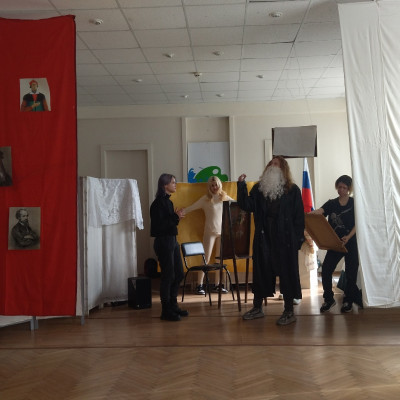 Студенты по готовили поздравление для своих учителей и показали спектакль: "Учителя прошлого".