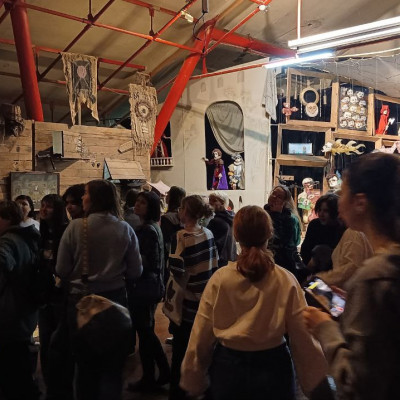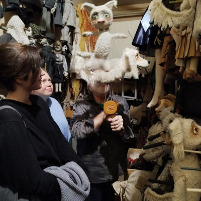 Студенты познакомились с историей театра кукол, узнали как устроен театр и как создаются спектакли. Посетили мастерские, где делают кукол, помещения для реквизита, музей кукол и посмотрели на сцену с другой стороны зрительного зала.