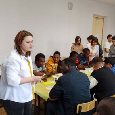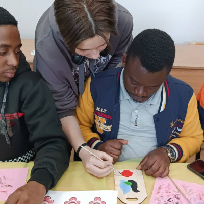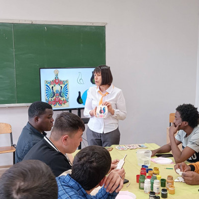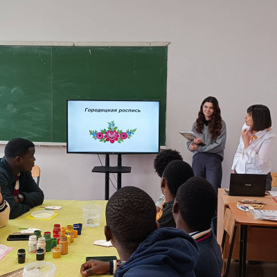 23 апреля в ВГТУ прошел мастер- класс по росписи досок "Городец", для студентов из Сирии и стран Африки. Преподаватель училища Одинцова О.В., Бондарева М.В. советник директора по воспитательной работе провели мастер-класс, им помогали студенты 2 курса специальности "Дизайн". Участники мероприятия познакомились с городской росписью и попробовали сами расписать доску. Участники мастер – класса изобразили в стиле городецкой росписи фазана и забрали свое изделие в качестве сувенира.