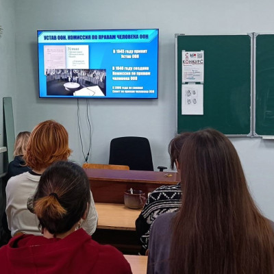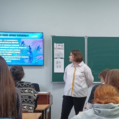 Сегодня для студентов 1-го и 2-го курсов прошел единый урок «Права человека», который проводится по инициативе Уполномоченного по правам человека в Российской Федерации. Советник директора по воспитанию обсудила со студентами важность соблюдения прав человека в обществе.