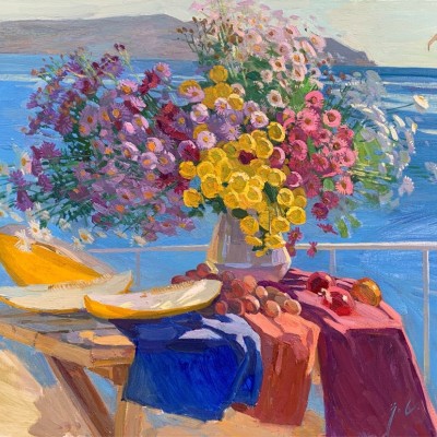 Участники пленэра отобразили в работах красоту и разнообразие природы Восточного Крыма, средневековые развалины Генуэзской крепости, татарской мечети. Натюрморты отразили разнообразие и яркость крымской палитры.