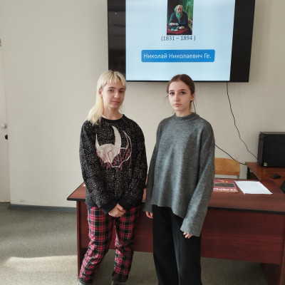 В училище прошла презентация "Жизнь в поисках истины", посвящённая русскому художнику Н.Н.Ге. Студенты 2 курса Полозова Софья и Колюкаева Екатерина рассказали о жизни и творчестве Николая Николаевича Ге.