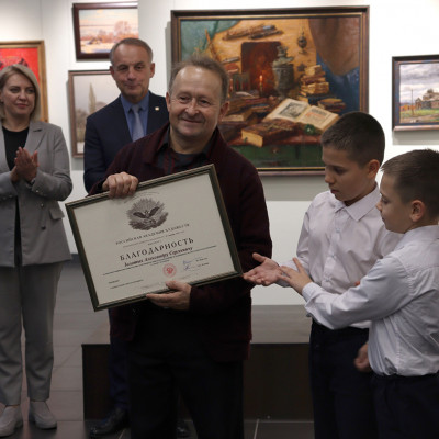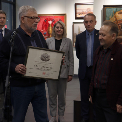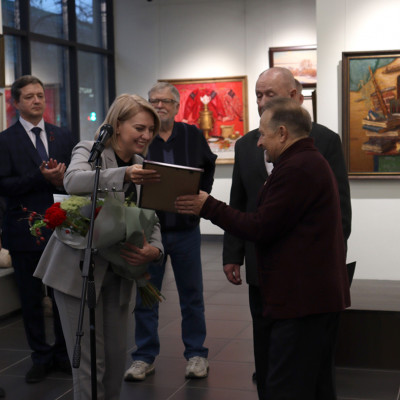 Мария Александровна Мазур отметила Александра Сергеевича как выдающегося художника и вручила Почетную грамоту министерства культуры Воронежской области.