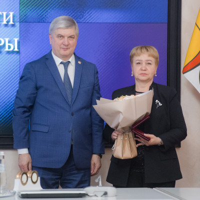 Губернатор Воронежской области Гусев Александр Викторович торжественно вручил Дмитриенко Ольне Васильевнуес медалью "За труды в культуре и искусстве" .