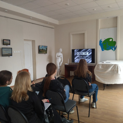5 апреля в рамках мероприятий "Россия мои горизонты" заместитель директора Чекменева Ю.А.прочитал лецию об образе идустриализациии в исккусстве и был показан фил Дзиги Ветрова "Энтузиазм: симфония Донбаса".