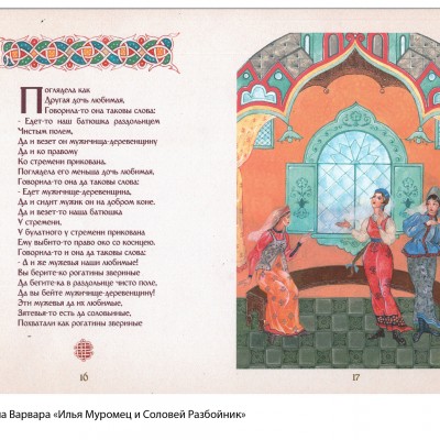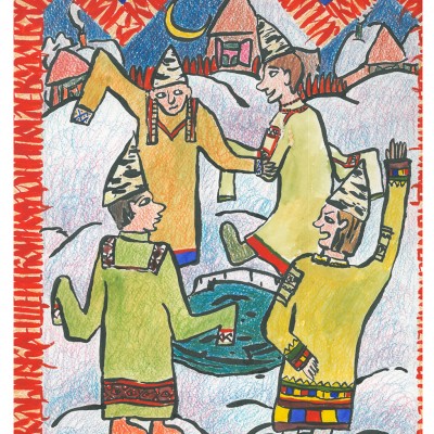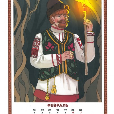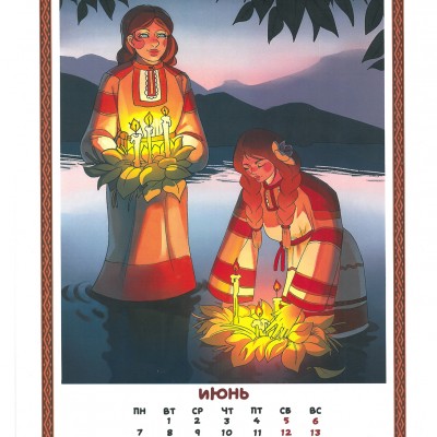 Еще одно направление выставки – это древнеславянская культура в знакомых с детства образах. Дремучие леса, суровые морозные зимы, народные гуляния, волшебные предметы и персонажи. Экспозиция знакомит с забытыми славянскими праздниками. Одна из запоминающихся работ – «Календарь Славянских праздников».