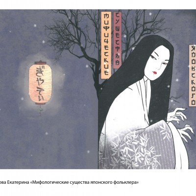 В экспозиции раскрыта тема древних японских традиций и верований, показаны различные мифические существа и божества, которые и сегодня можем встретить в японском фольклоре. Работы демонстрируют характерный восточный символизм, который растворен в традиционном пейзаже и элементах, напоминающих японскую гравюру.