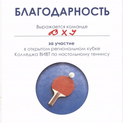 25 января 2023 года команда студентов училища приняла участие в открытом региональном кубке колледжа ВИВТ по настольному теннису.