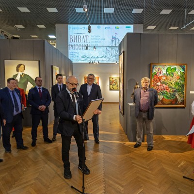 21 апреля в Воронежском областном художественном музее им. И.Н. Крамского состоялось торжественное открытие художественной выставки членов Российской академии художеств «Виват, Россия!», посвященной 350-летию со дня рождения Петра I, ставшей первым событием в программе мероприятий музея, посвященных знаменательной дате. На выставке представлено около 100 произведений живописи, графики, скульптуры и декоративно-прикладного искусства, выполненных более 40 авторами – членами Российской академии художеств из Москвы, Московской области, Воронежа, Тамбова, Орла и Липецка.