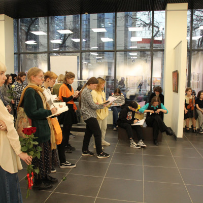 4 апреля в фойе выставочного зала Кирова 8 открылась выставка «Мы вместе» учеников С.В. Зиненко. Экспозицию составили графические и живописные работы студентов 2 курса Анны Житеневой; Александры Жуковой; Дарьи Куманиной; Софьяи Махоты; Софьи Полозовой; Ксении Пресняковой; Анастасии Самодуровой. На открытии прозвучали классические музыкальные произведения исполненные учениками Воронежской специальной музыкальной школы. Экспозиция студенческих работ стала частью персональной выставки Светланы Зиненко.