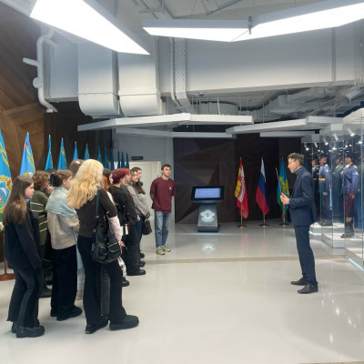 Студенты познакомились с постоянной экспозицией музея, погрузились в историю военно-десантных войск, узнали о героических подвигах «крылатой пехоты» и сложных боевых задачах, которые выполняют десантники.